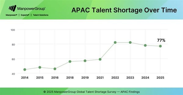 SINGAPORE,Jan. 24,2025 -- The 2025 ManpowerGroup's latestTalent Shortage Survey reveals that nearly four in five employers in the Asia Pacific (APAC) region are struggling to find skilled talent,with 77% reporting difficulties. This marks a significant increase from 45% in 2014 and exceeds the global average of 74%,underscoring a growing concern for employers across diverse industries.